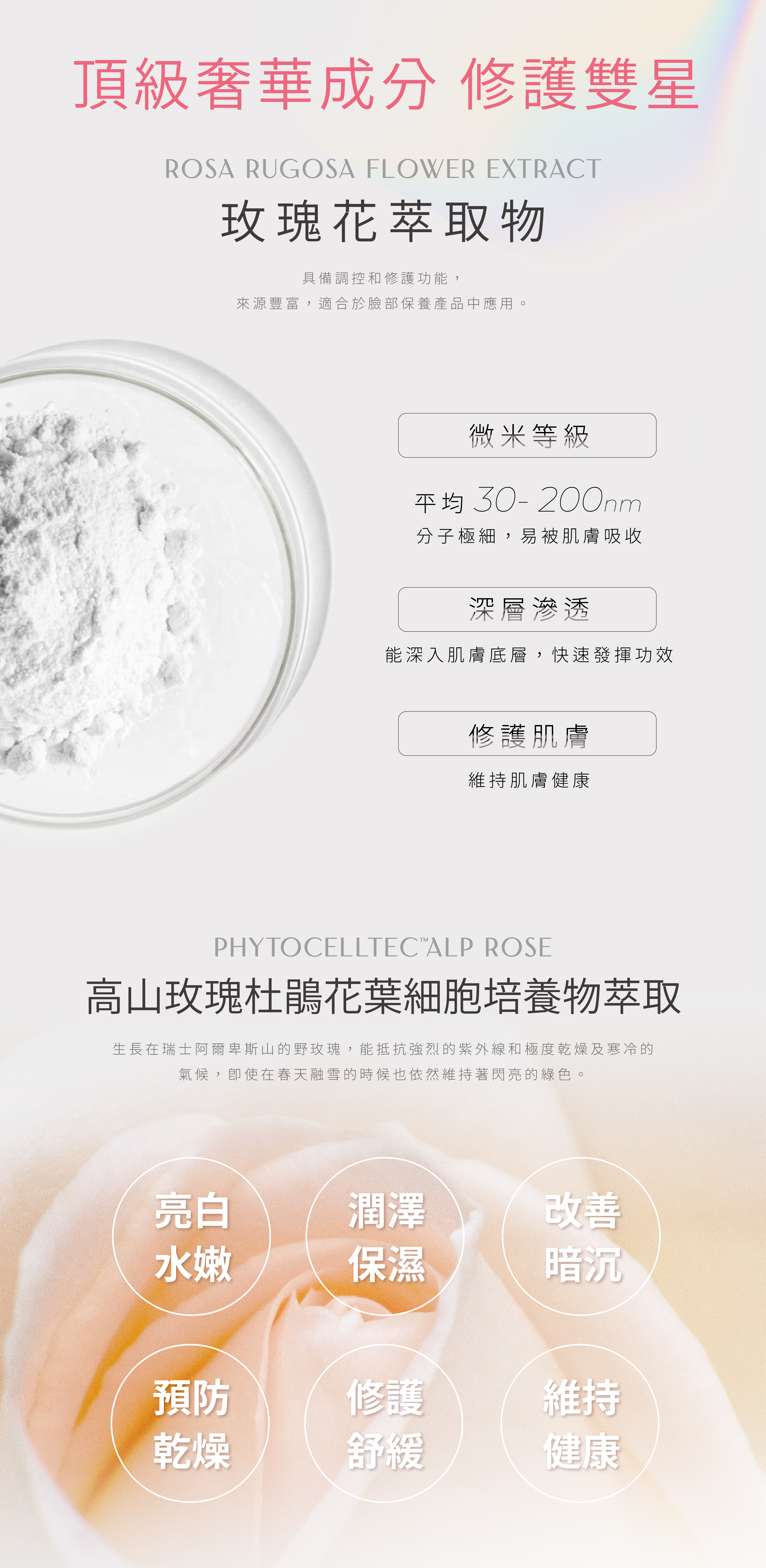 • 玫瑰葉幹細胞,保持肌膚水潤