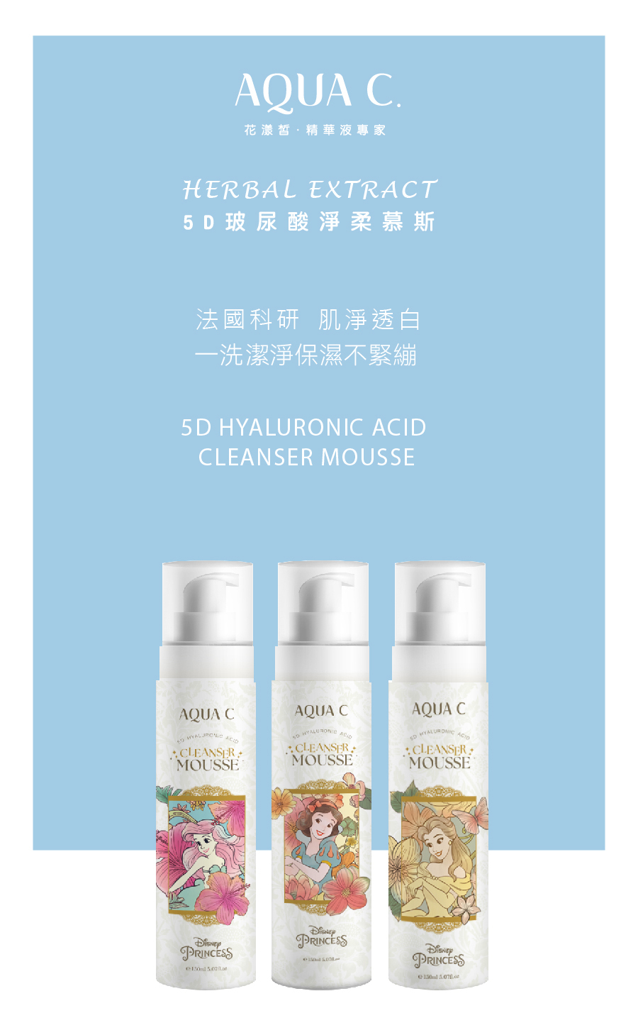 【迪士尼公主系列】AQUA C.花漾皙5D玻尿酸淨柔慕斯 150ml (隨機出貨)